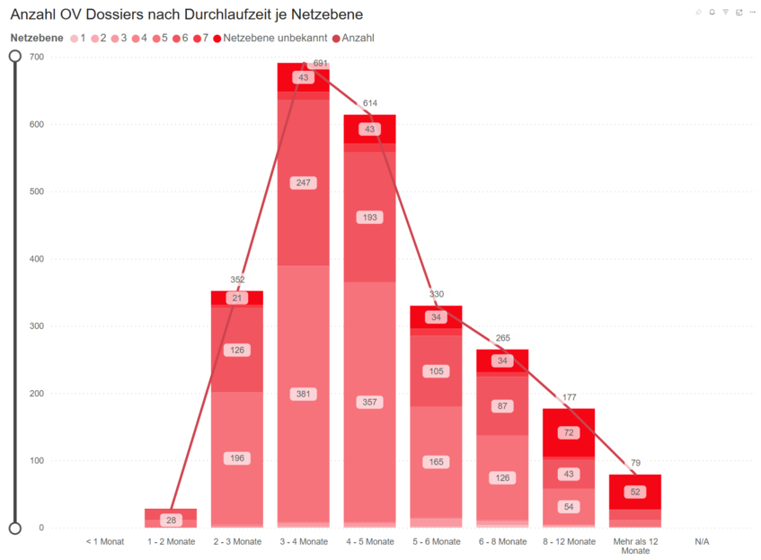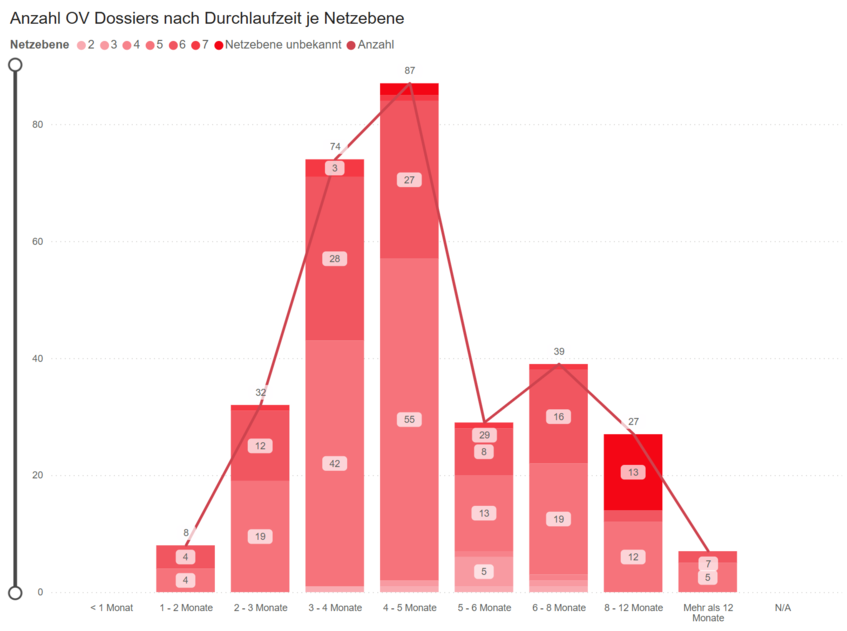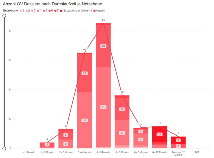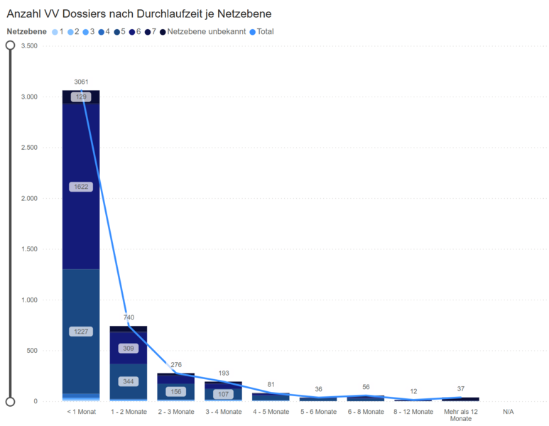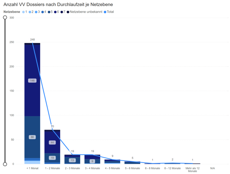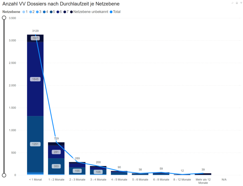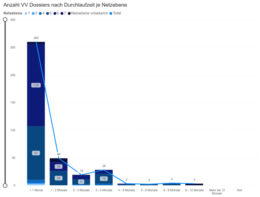 Ab Mai 2024 werden die Netzebenen in den Gesuchen erfasst. Bei Gesuchen, die vor dem Mai 2024 eingereicht wurden, fehlen diese Angaben. Die Gesuche werden deshalb mit «Netzebene unbekannt» ausgewertet.